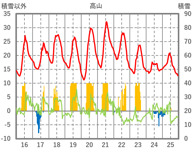 | 日 | 時 | 気温 | 降水 | 風向/風速 | 日照 | 積雪 | 降雪 |