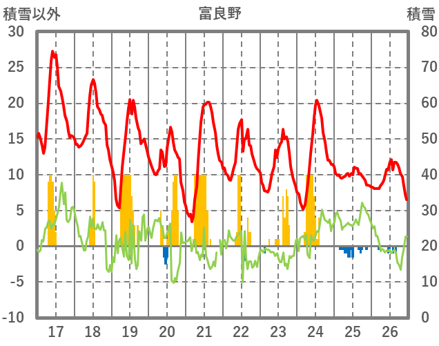 | 日 | 時 | 気温 | 降水 | 風向/風速 | 日照 | 積雪 | 降雪 |