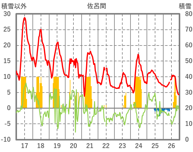 | 日 | 時 | 気温 | 降水 | 風向/風速 | 日照 | 積雪 | 降雪 |