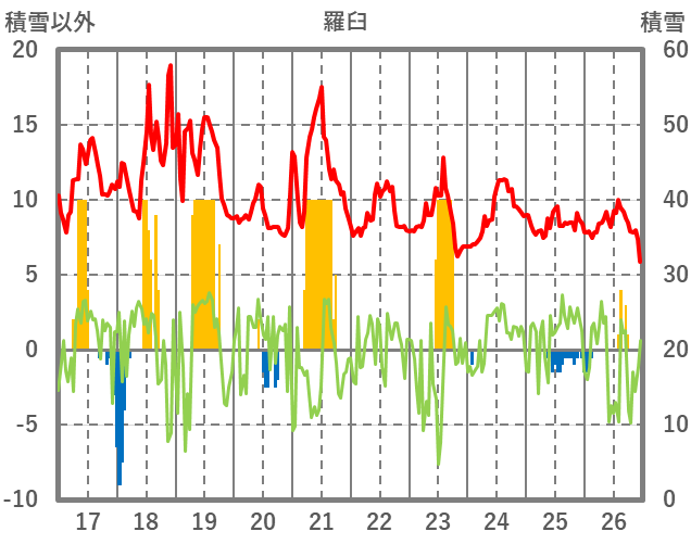 | 日 | 時 | 気温 | 降水 | 風向/風速 | 日照 | 積雪 | 降雪 |