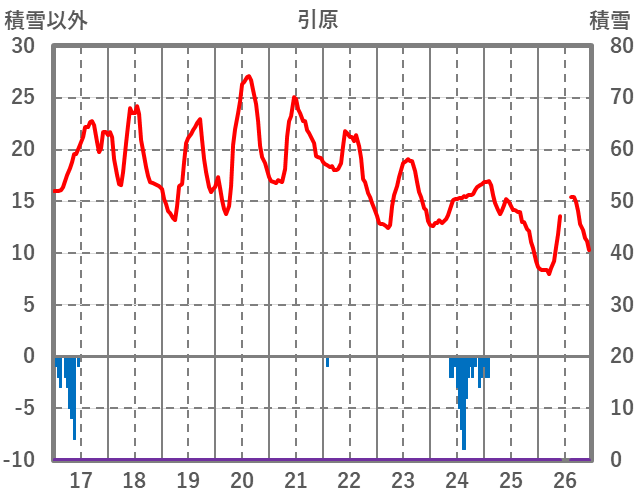 | 日 | 時 | 気温 | 降水 | 風向/風速 | 日照 | 積雪 | 降雪 |