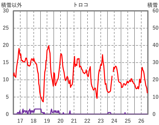 | 日 | 時 | 気温 | 降水 | 風向/風速 | 日照 | 積雪 | 降雪 |