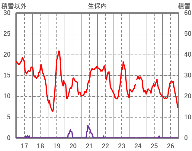 | 日 | 時 | 気温 | 降水 | 風向/風速 | 日照 | 積雪 | 降雪 |