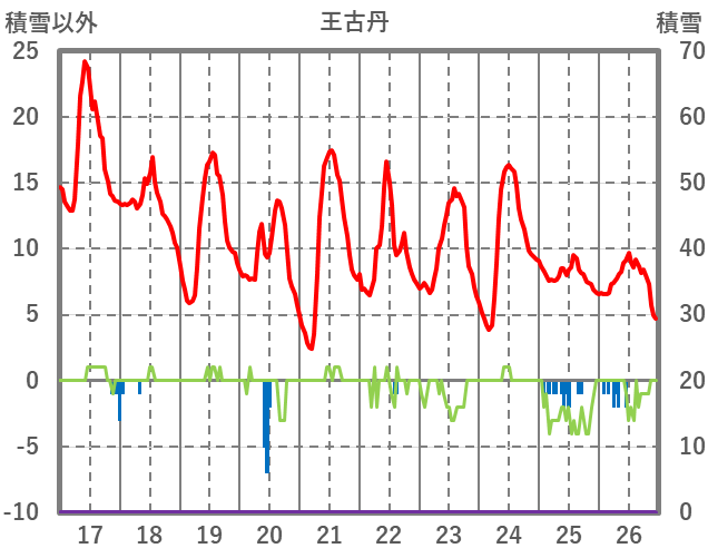 | 日 | 時 | 気温 | 降水 | 風向/風速 | 日照 | 積雪 | 降雪 |