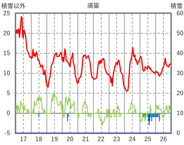| 日 | 時 | 気温 | 降水 | 風向/風速 | 日照 | 積雪 | 降雪 |
