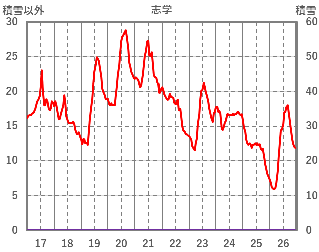 | 日 | 時 | 気温 | 降水 | 風向/風速 | 日照 | 積雪 | 降雪 |