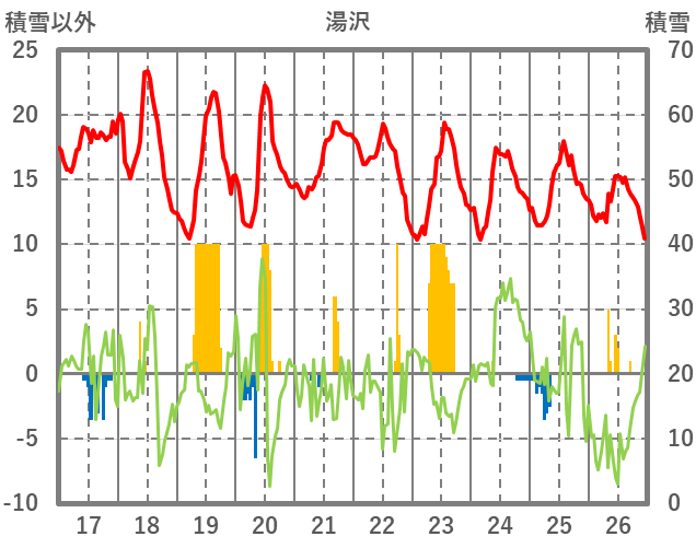 | 日 | 時 | 気温 | 降水 | 風向/風速 | 日照 | 積雪 | 降雪 |