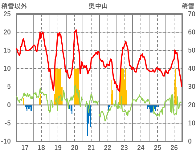 | 日 | 時 | 気温 | 降水 | 風向/風速 | 日照 | 積雪 | 降雪 |