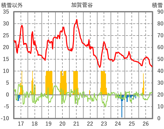 | 日 | 時 | 気温 | 降水 | 風向/風速 | 日照 | 積雪 | 降雪 |
