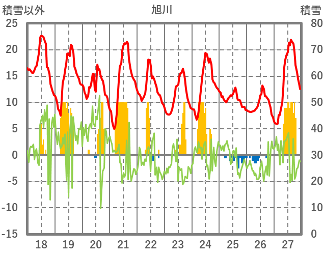 | 日 | 時 | 気温 | 降水 | 風向/風速 | 日照 | 積雪 | 降雪 |
