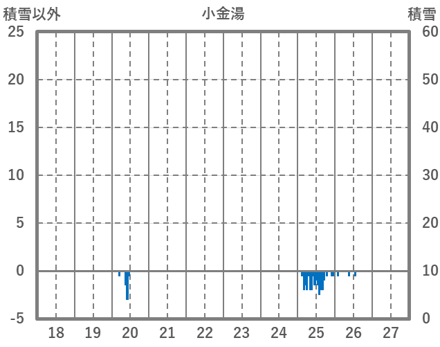 | 日 | 時 | 気温 | 降水 | 風向/風速 | 日照 | 積雪 | 降雪 |