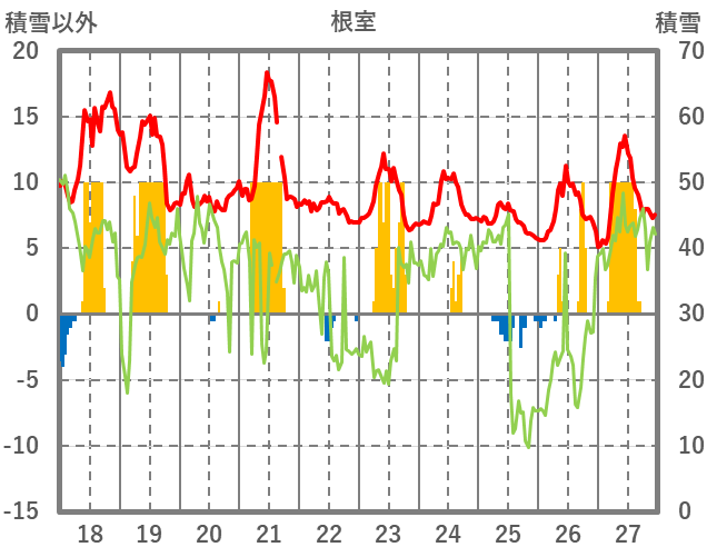 | 日 | 時 | 気温 | 降水 | 風向/風速 | 日照 | 積雪 | 降雪 |