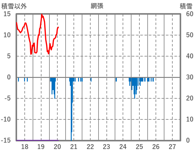 | 日 | 時 | 気温 | 降水 | 風向/風速 | 日照 | 積雪 | 降雪 |