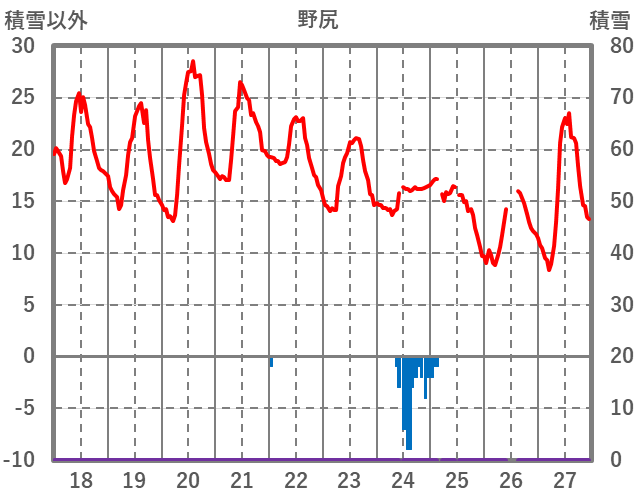| 日 | 時 | 気温 | 降水 | 風向/風速 | 日照 | 積雪 | 降雪 |