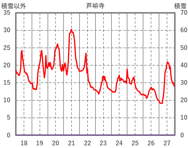 | 日 | 時 | 気温 | 降水 | 風向/風速 | 日照 | 積雪 | 降雪 |