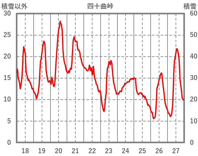 | 日 | 時 | 気温 | 降水 | 風向/風速 | 日照 | 積雪 | 降雪 |