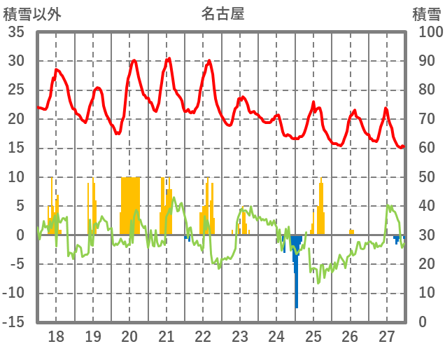 | 日 | 時 | 気温 | 降水 | 風向/風速 | 日照 | 積雪 | 降雪 |