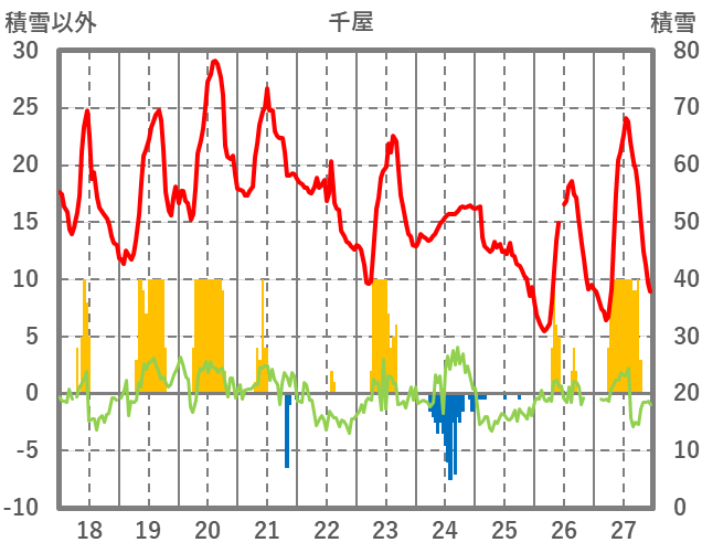| 日 | 時 | 気温 | 降水 | 風向/風速 | 日照 | 積雪 | 降雪 |