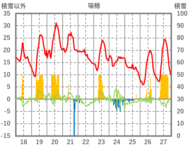 | 日 | 時 | 気温 | 降水 | 風向/風速 | 日照 | 積雪 | 降雪 |