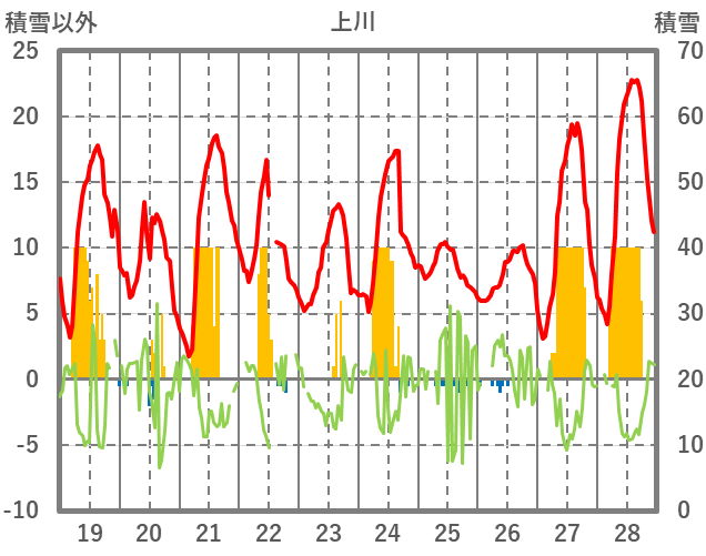 | 日 | 時 | 気温 | 降水 | 風向/風速 | 日照 | 積雪 | 降雪 |