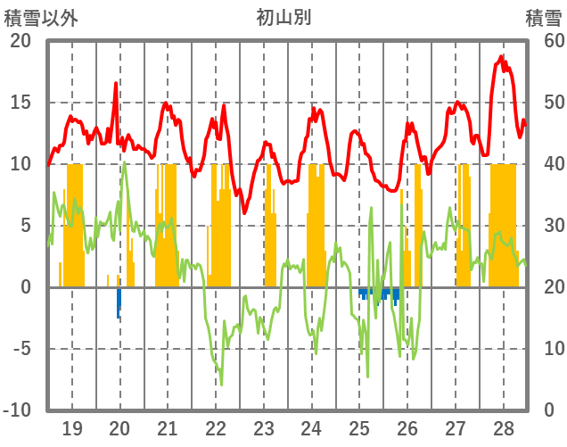 | 日 | 時 | 気温 | 降水 | 風向/風速 | 日照 | 積雪 | 降雪 |