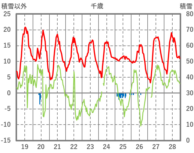 | 日 | 時 | 気温 | 降水 | 風向/風速 | 日照 | 積雪 | 降雪 |