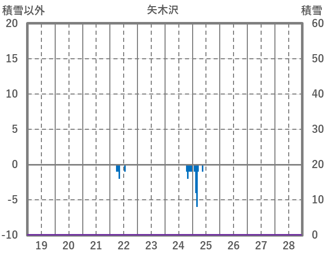 | 日 | 時 | 気温 | 降水 | 風向/風速 | 日照 | 積雪 | 降雪 |