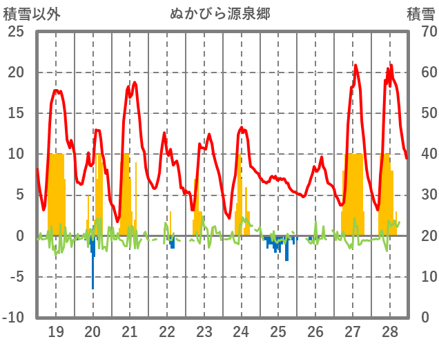 | 日 | 時 | 気温 | 降水 | 風向/風速 | 日照 | 積雪 | 降雪 |