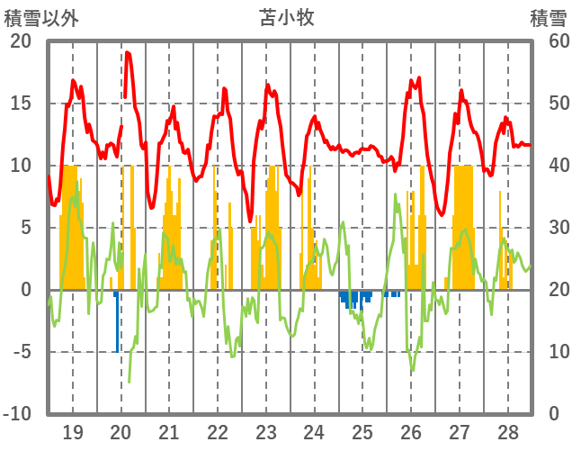 | 日 | 時 | 気温 | 降水 | 風向/風速 | 日照 | 積雪 | 降雪 |