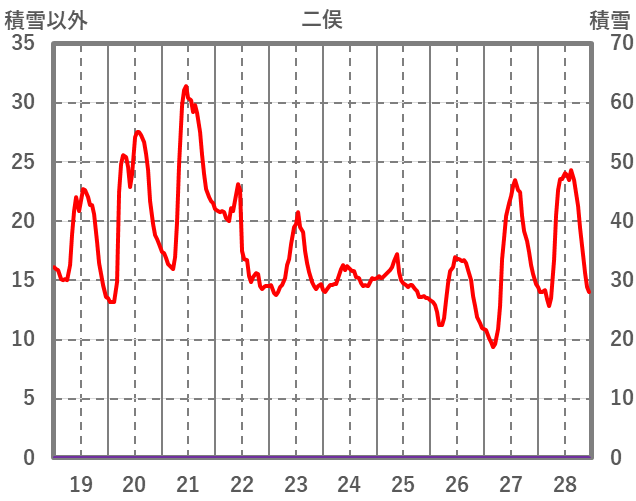 | 日 | 時 | 気温 | 降水 | 風向/風速 | 日照 | 積雪 | 降雪 |