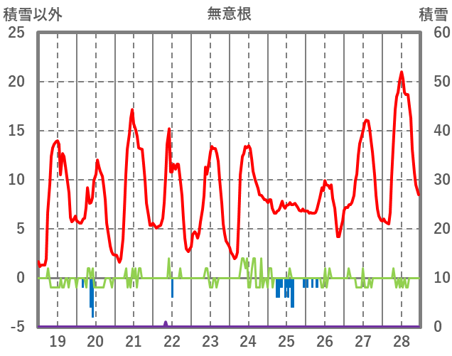 | 日 | 時 | 気温 | 降水 | 風向/風速 | 日照 | 積雪 | 降雪 |
