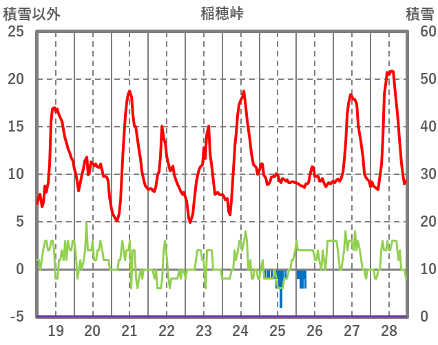 | 日 | 時 | 気温 | 降水 | 風向/風速 | 日照 | 積雪 | 降雪 |