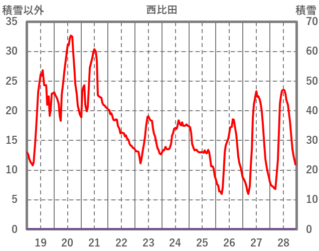 | 日 | 時 | 気温 | 降水 | 風向/風速 | 日照 | 積雪 | 降雪 |