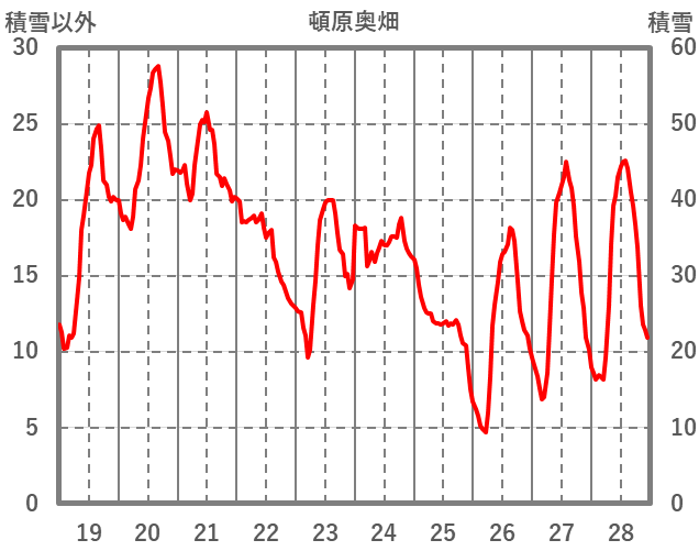 | 日 | 時 | 気温 | 降水 | 風向/風速 | 日照 | 積雪 | 降雪 |