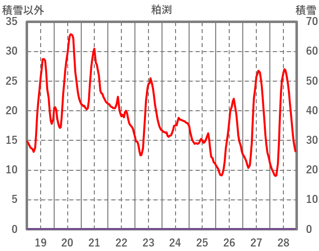 | 日 | 時 | 気温 | 降水 | 風向/風速 | 日照 | 積雪 | 降雪 |
