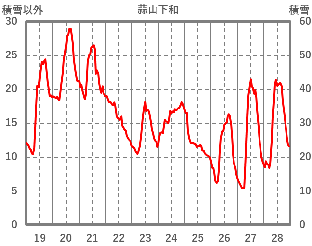 | 日 | 時 | 気温 | 降水 | 風向/風速 | 日照 | 積雪 | 降雪 |