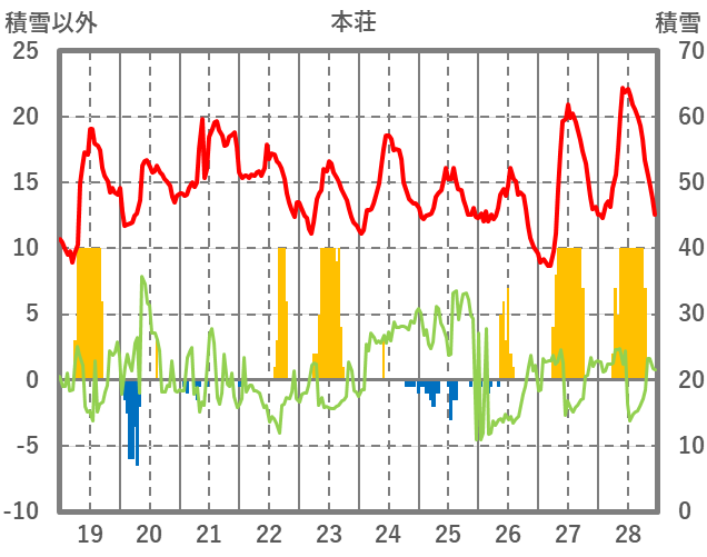 | 日 | 時 | 気温 | 降水 | 風向/風速 | 日照 | 積雪 | 降雪 |