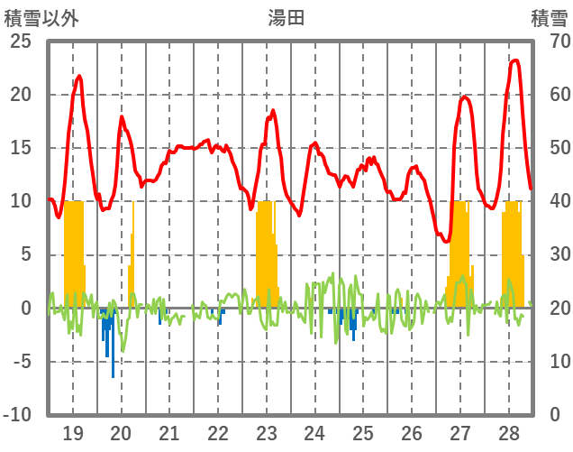| 日 | 時 | 気温 | 降水 | 風向/風速 | 日照 | 積雪 | 降雪 |