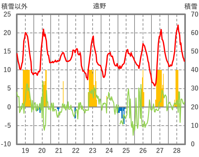| 日 | 時 | 気温 | 降水 | 風向/風速 | 日照 | 積雪 | 降雪 |