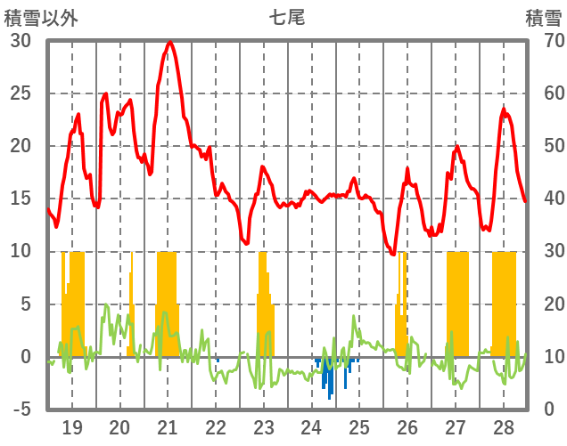 | 日 | 時 | 気温 | 降水 | 風向/風速 | 日照 | 積雪 | 降雪 |