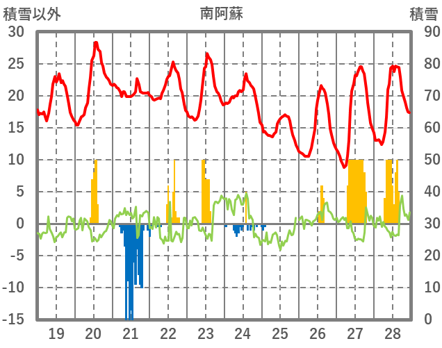 | 日 | 時 | 気温 | 降水 | 風向/風速 | 日照 | 積雪 | 降雪 |