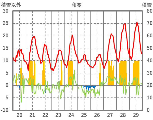 | 日 | 時 | 気温 | 降水 | 風向/風速 | 日照 | 積雪 | 降雪 |