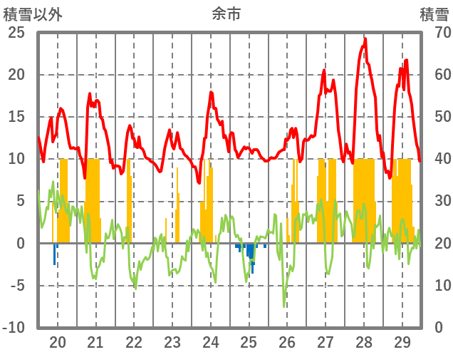 | 日 | 時 | 気温 | 降水 | 風向/風速 | 日照 | 積雪 | 降雪 |