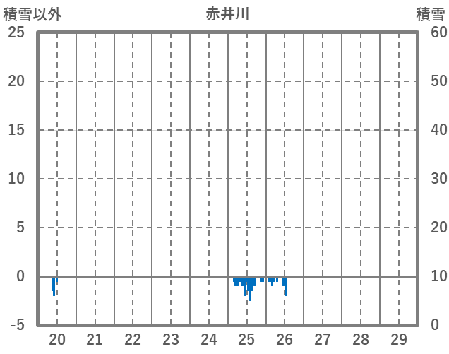 | 日 | 時 | 気温 | 降水 | 風向/風速 | 日照 | 積雪 | 降雪 |