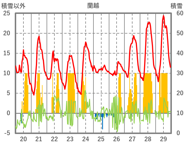 | 日 | 時 | 気温 | 降水 | 風向/風速 | 日照 | 積雪 | 降雪 |