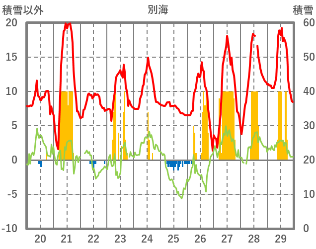 | 日 | 時 | 気温 | 降水 | 風向/風速 | 日照 | 積雪 | 降雪 |