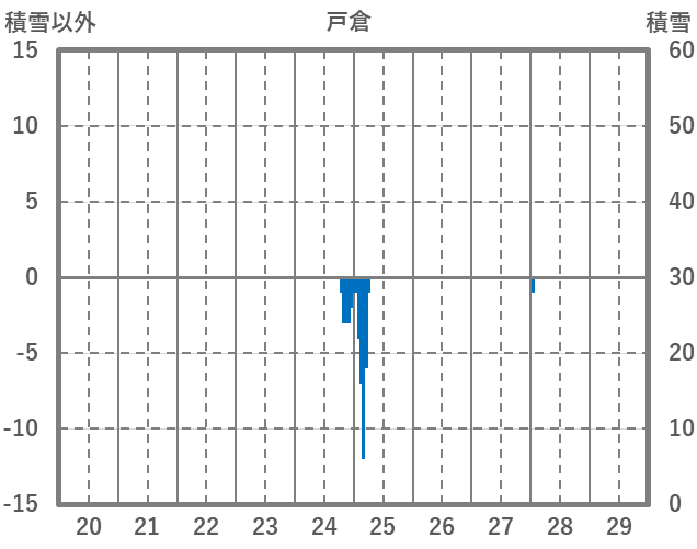 | 日 | 時 | 気温 | 降水 | 風向/風速 | 日照 | 積雪 | 降雪 |