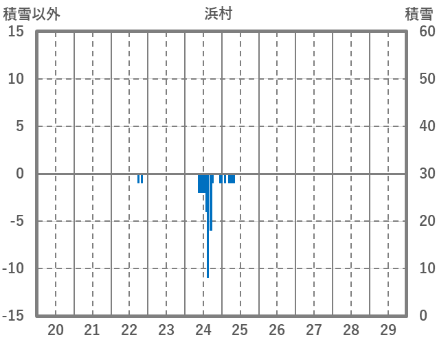 | 日 | 時 | 気温 | 降水 | 風向/風速 | 日照 | 積雪 | 降雪 |