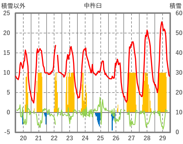 | 日 | 時 | 気温 | 降水 | 風向/風速 | 日照 | 積雪 | 降雪 |