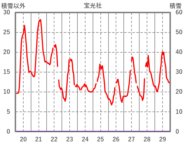 | 日 | 時 | 気温 | 降水 | 風向/風速 | 日照 | 積雪 | 降雪 |